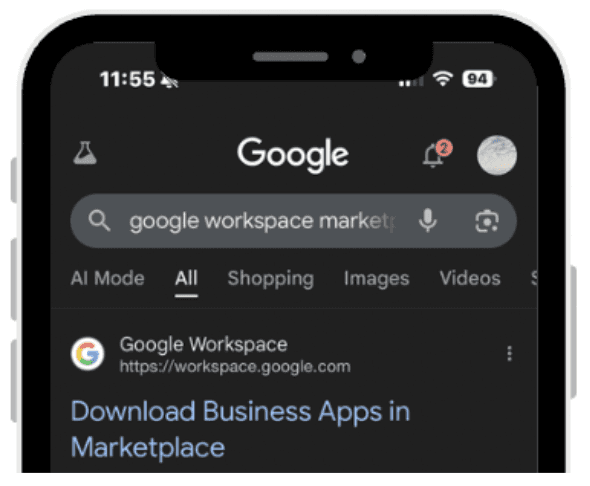 On your iPhone, open a browser and go to the Google Workspace Marketplace.