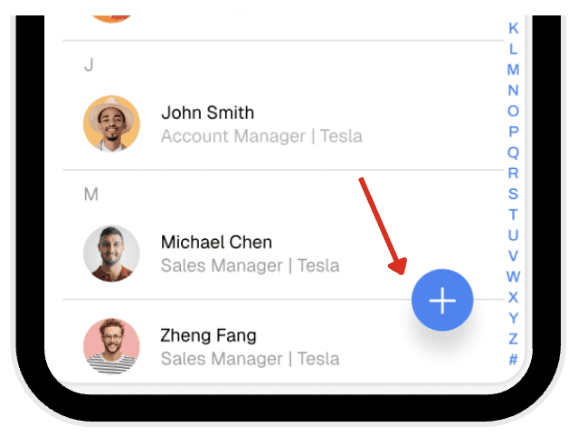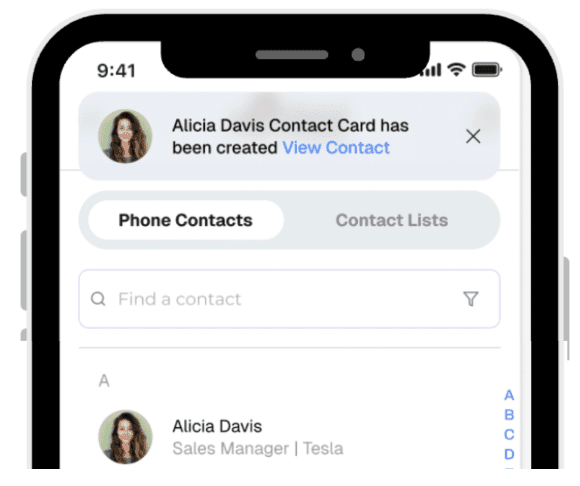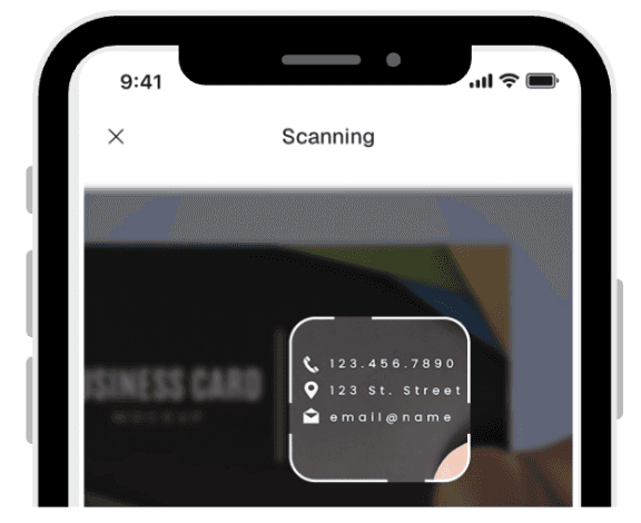 Upload or take a picture of the business card or image into the app. AI scans the card and auto-fills fields of the contact.