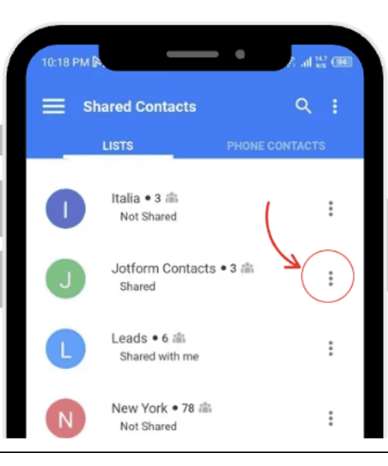 Tap “Contacts List.”