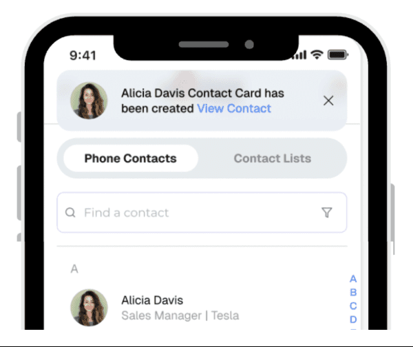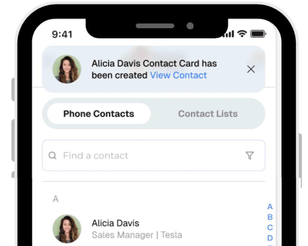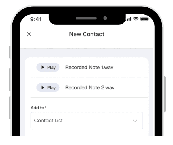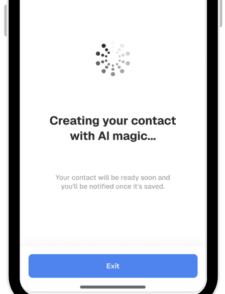 Multiple input methods make it faster and easier to create new contacts.AI extracts contact details from photos, cards, or audio:
