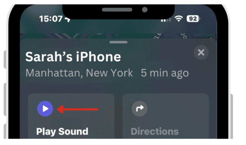 Use the Play Sound option to make your phone emit a sound, helping you locate it if it’s nearby.