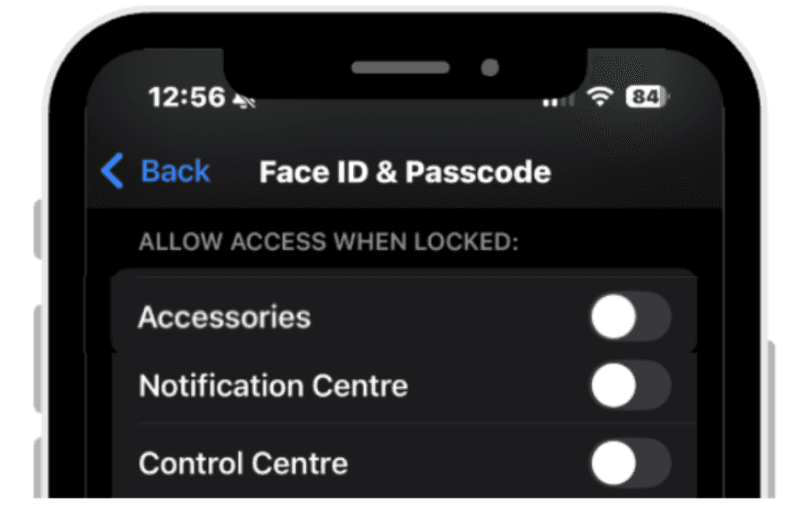 Under Allow Access When Locked, toggle off Accessories, Notifications, and Control Center to prevent access from the lock screen.