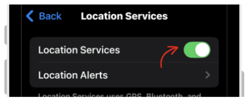 Turn Location Services toggle ON.