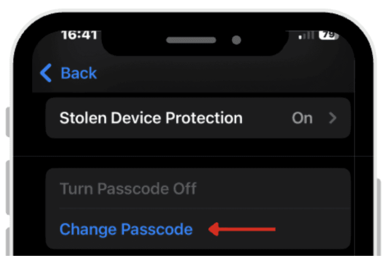 Scroll and click Change Passcode. Follow the prompts to create a new password, securing your account from unauthorized access.