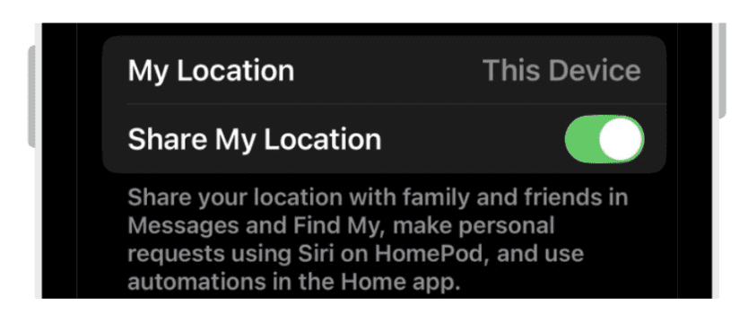 Share My Location: Toggle ON